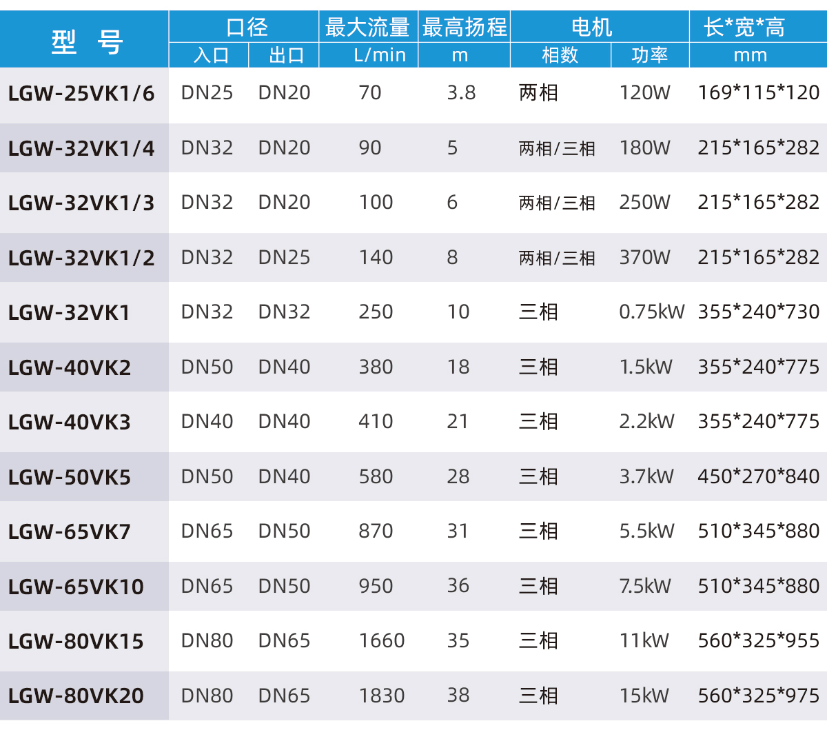 3、比重:VK:1.1,VP:1.4 4、马力:1/6HP-20HP