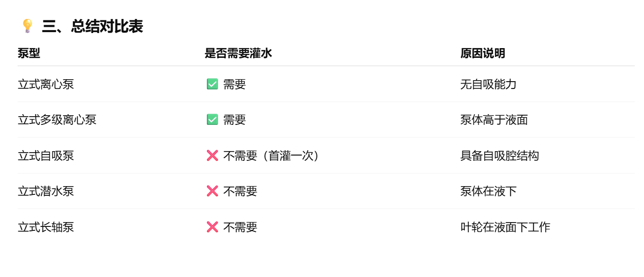 ⚙️ 二、特殊情况:某些立式泵不需要灌水